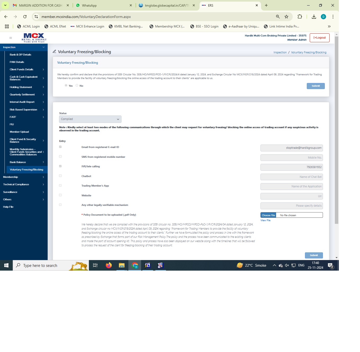 Update your email id and mobile number with your stock broker / depository participant and receive OTP directly from depository on your email id and/or mobile number to create pledge.